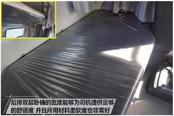 位于座椅后方的是双层卧铺。通常情况下,受制于驾驶室内部空间的限制,卧铺的宽度都无法为司机提供足够的舒适度,而联合卡车U550则显然没有这样的问题,并且记者亲试,双层卧铺的柔软度都非常好。