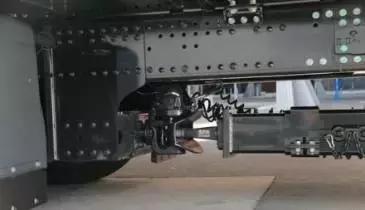 不同于半挂车,中置轴挂车的主车部分并不是牵引车头,而是载货车底盘。它的拖钩位于主车底盘下方,位置更低,因此中置轴挂车的底盘也可以做得更低。重心更低,更安全。能够避免高度限制,车辆可以倾斜放置,提高容量。