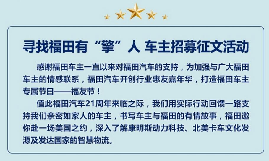 寻找福田时代/瑞沃有“擎”人,共赴美国“擎”怀之旅!