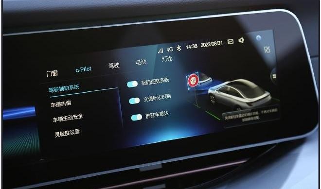 该车配备了α-Pilot高级辅助驾驶系统,采用博世最新一代方案,由1个域控制器、1个第三代200万超高像素多功能摄像头、4个第二代环视摄像头、1个第五代毫米波雷达和8枚第六代超声波传感器共同组成。可实现车道保持、换道避险、前向紧急避撞、前/后向横穿预警等功能。
