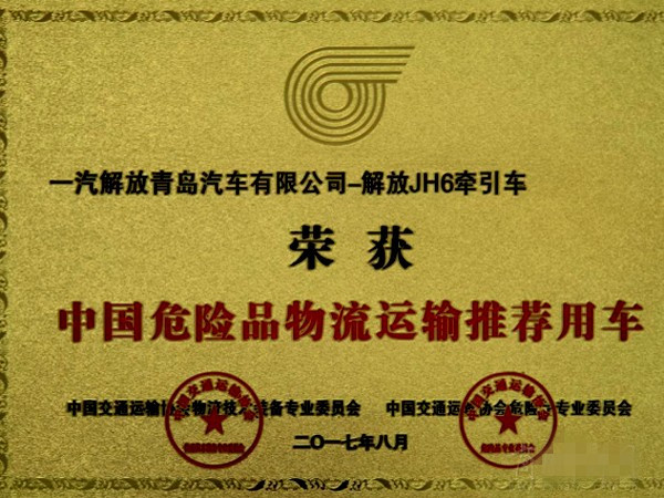 解放JH6获“中国危险品物流运输推荐用车”称号