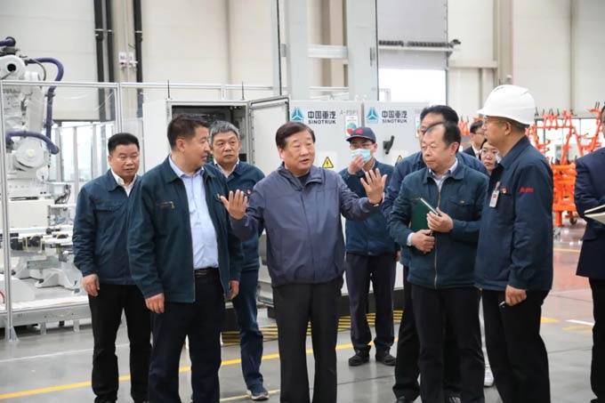 在中国重汽智能网联(新能源)重卡项目一期生产现场,谭旭光指出,在提高生产效率的同时,必须采取更加严格的质量管控措施,确保产品高品质交付;要不断提升智能制造水平,“国际一流企业能做到的,我们也一定能做到!”