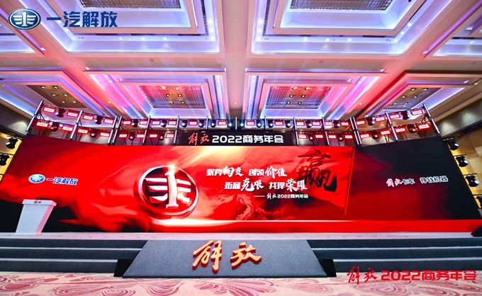 2021年12月29日,以“驭势向变 创领价值 拓局克艰 共捍荣耀”为主题的解放2022商务年会在新中国汽车工业的摇篮、一汽解放的大本营——长春隆重召开。一汽解放领导班子成员,以及来自全国各地的解放经销商、服务商、备品经销商、专用车企业和合作伙伴,媒体朋友携手相聚,并以“百城、千店、万人”齐聚云端的形式共享盛会。共享解放2021年的荣耀战绩,共谋一汽解放2022年发展大计。