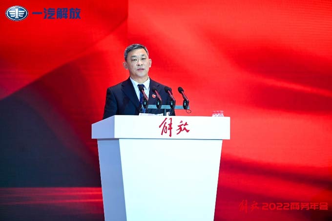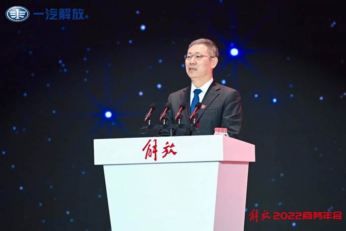 携手并肩图共济,千帆齐秀竞遨游。中国一汽总经理助理、一汽解放董事长、党委书记-胡汉杰在致辞中讲到:2021年,一汽解放坚持“创新变革”双驱动,加速转型升级,以产销跨越800万辆的行业丰碑,赢得“十四五”良好开局!而面向未来,解放更要驾驭新形势、应对新挑战、立足新起点、回应新期待,以“时不我待 只争朝夕”的紧迫感、“一日不为 三日不安”的责任心,向着中国第一、世界一流的智慧交通运输解决方案提供者阔步前行!