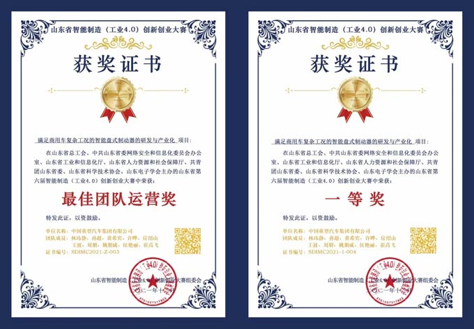 日前,第六届山东省智能制造(工业4.0)创新创业大赛在山东淄博成功举办,中国重汽集团报送的《满足商用车复杂工况的智能盘式制动器的研发与产业化》项目在全省298个项目中脱颖而出,取得总决赛一等奖及最佳团队运营奖的优异成绩。