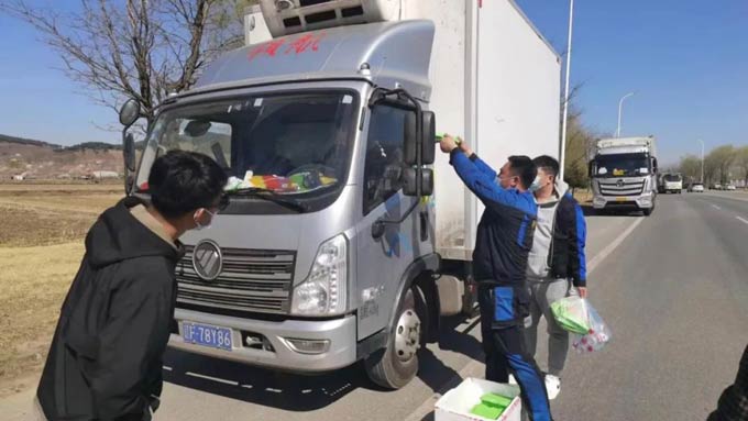 为减少人民群众损失,当地政府根据疫情情况每天安排200台冷藏车到田间收取成熟草莓,销往沈阳、大连等地,丹东东港景麟领航服务站在得知政府安排后,与当地疫情防控部门申请后,主动到草莓主产区为运输草莓卡友保驾护航,为当地疫情防控工作提供帮助的同时,为领航卡友免费提供饭菜,体现领航卡车的社会责任感和担当。