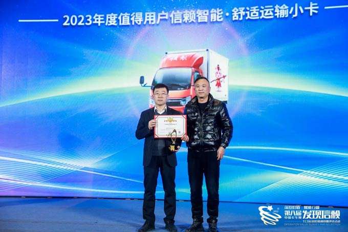2023年2月21日,由中国卡车网所举办的第八届发现信赖中国卡车用户调查暨评选活动的颁奖典礼现场,福田领航S1一举夺得“2023年度值得用户信赖智能舒适运输小卡”大奖,在用户的注目与行业同仁的认可下,福田汽车集团时代事业部领航营销公司总经理韩学锋在发现信赖的舞台上接过了这座代表荣誉的奖杯。