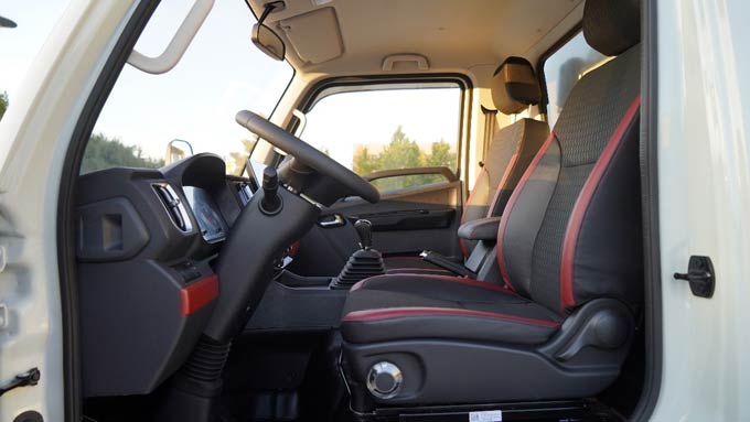 不仅如此,福田领航S1在舒适性上的表现也是相当优秀。1730超宽驾乘空间,即使是身高一米八的卡友,入座后头部、腿部和肩部空间都绰绰有余,除了空间宽敞给人舒适感外,细节设计也恰到好处。钢琴烤漆的中控面板给人温润如玉的质感,钢琴按键式开关、亚克力镀铬换挡手球等配置,精致度拉满;更有诚意的是,驾驶位装配液压减震座椅,这在小卡车型中还是头一个,座椅可根据体重及姿势做出人性化调节,柔和减震,有效缓解驾驶疲劳。