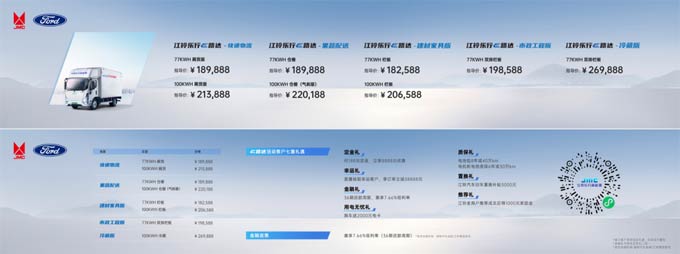 此次江铃乐行将为市场提供八款E路达车型,售价区间为182,588元-269,888元。同时,为回馈新老客户对于江铃乐行的支持,在上市之际用户将会享受到超值购车福利政策,并可在线上商城直接下单,让用户更实惠、更方便购车。