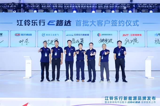 领先的技术实力,也让江铃乐行E路达备受业界认可。现场,江铃乐行E路达首批大客户订单交付及生态伙伴签约仪式成功举行,首批意向订单突破万台,这意味着江铃乐行新能源在成就客户的道路上,迈出了坚实一步。未来,江铃乐行新能源还将陆续推出覆盖智慧物流、绿色客运、任务&改装领域的优质产品,持续为客户创造美好生活赋能。