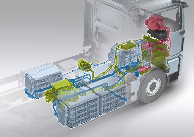 模块化电池架构使eTGX和eTGS的整车构造更加合理,灵活的电池安置区域,能够为车辆左右两侧腾出空间以根据客户需求安装其他的车身部件。与传统内燃机类似,驾驶室下方标准安装的两块电池确保了良好的重量分配。中央驱动单元位于车架中央,包括同步电机、逆变器及变速器。