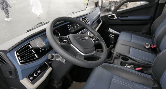 驾乘舒适性方面,领航大G同样不遗余力。主驾座椅是气囊减震的,可根据体重自适应调节;气动腰托,双气袋腰托,上下前后四向可调;靠背、座垫双通风加热,冬暖夏凉,三挡可调;内侧扶手,三挡可调;靠背放平变卧铺。这样的座椅配备,让驾驶者在长途驾驶中也能保持舒适。通过仿真分析和用户实际测试,优化了方向盘的倾角、握感,方向盘倾角55度设计,配合最优的座椅高度,领航大G有同类产品最舒适的坐姿。