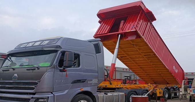 第二种车型是骨架半挂车配备后卸或侧卸箱体,这一组合的兴起始于2022年。受到国内经济下滑和物流需求不振的双重影响,加之国家大力倡导公转铁运输模式,骨架半挂车与后卸或侧卸箱体的结合逐渐在滇中、滇东地区崭露头角。特别是在煤炭和砂石料的中短途运输中,这种车型已成为主打销售产品。骨架半挂车主要以20英尺(约8.5-9.5米)的长度为主,其特点设计是在于集装箱下部加装了液压举升缸。