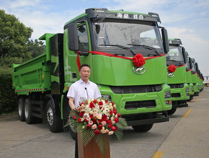本次交付仪式是苏州金龙与海蓝居共同推动绿色城市建设的又一重要里程碑。在活动现场致辞时,苏州金龙党委书记、董事长陈笃廉表示,苏州金龙始终秉持“绿色、智能、高效”的发展理念,致力于推动商用车行业向更加环保、可持续的方向迈进。此次交付的这批新能源自卸车,搭载了先进的电驱动系统,实现了零排放、低噪音的绿色运输;同时,通过智能化管理平台,实现了车辆运营的高效调度与远程监控,有效提升了运输效率与安全性。