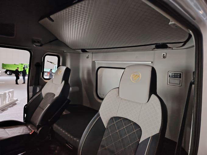 欧航R系列7.0L产品全新造型驾驶室基于“航空航天”理念打造,整体采用简约设计,前围饱满一体,风阻系数更低,从而有效降低车辆行驶中的风阻,整车作业更节油。驾驶室内部,平地板+怀挡设计,空间布局更优,主副驾通行更便利,配合自动大灯大大提升了用户驾驶安全性。