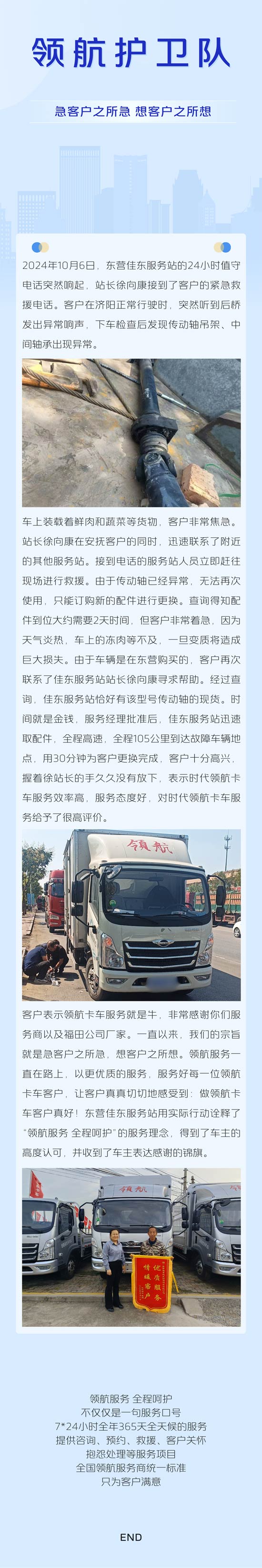 领航护卫队|急客户之所急,想客户之所想——山东大区东营佳东服务站救援纪实