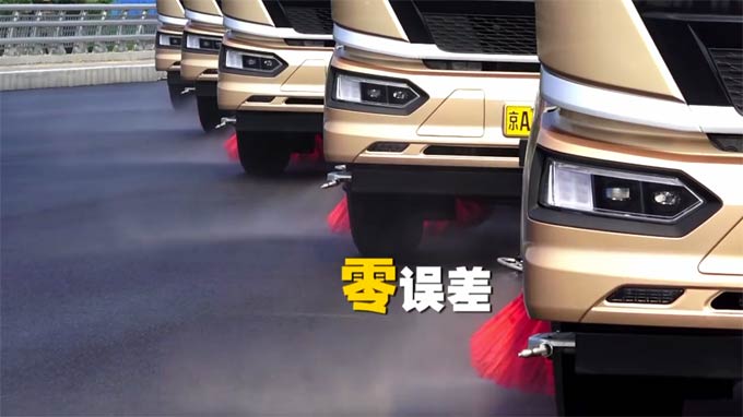 为了让清洁效果达到“阅兵级”标准,车队对间距的把控堪称严苛:前后车辆保持 3.5 米的黄金距离,既不耽误前车作业,又能让后车及时跟进补扫;左右并列的车辆更将间距缩小到“厘米级”,车轮几乎沿着同一条隐形轨迹行驶,确保两辆车间的清洁区域无缝衔接,连最窄的路面缝隙都不会被遗漏。