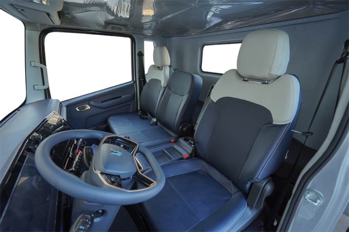 不仅如此,潍柴蓝擎X7纯电轻卡在驾驶室设计上也充分考虑卡友的实际需求,2120mm超宽驾驶室带来宽敞空间,有效缓解疲劳;加宽的前挡风玻璃与优化的A柱设计,大幅提升驾驶视野,减少盲区;同时,驾驶室配备人体工程学座椅、多功能方向盘、中控大屏等舒适配置,细节处的用心有效兼顾运营效率与驾驶舒适性。