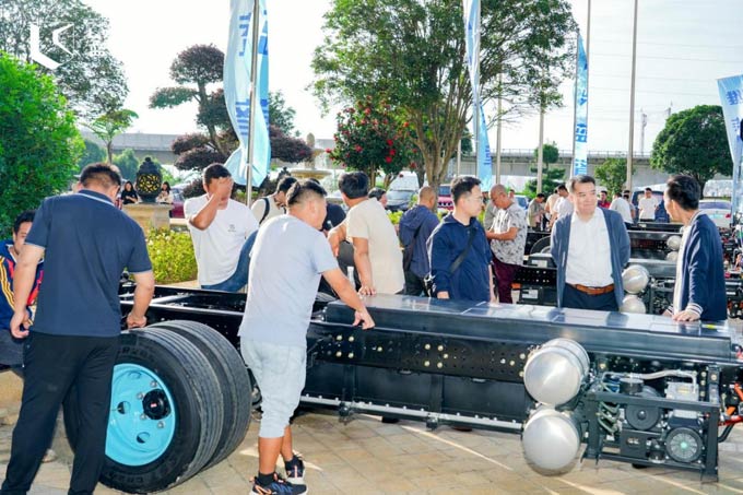 交车仪式上,六位首批车主接过新车钥匙,难掩激动:“以前开燃油车怕油价涨,开普通电车怕续航不够、爬坡没劲,现在这款车全解决了,满电跑山路、重载拉货都放心!”
