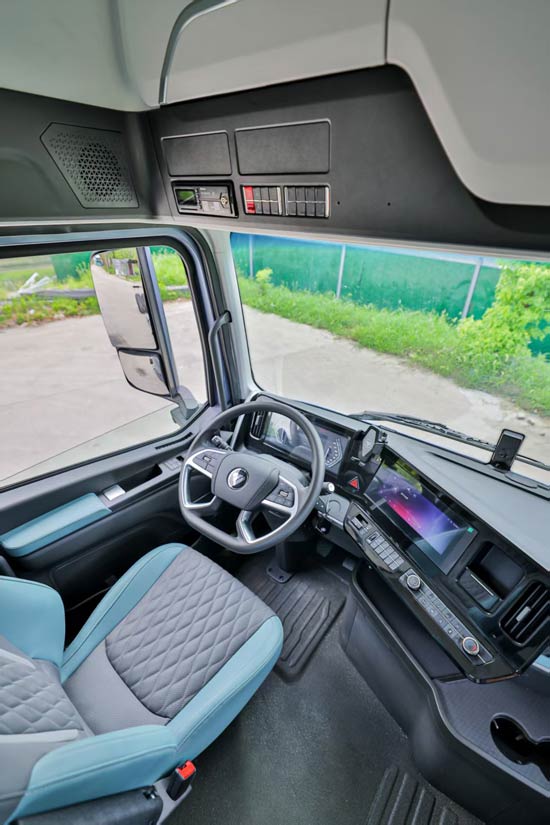考虑到中长途冷链运输司机“两班倒、连轴转”的工作模式,欧航H系列在舒适性上做了针对性优化。2350mm中宽驾驶室、平地板设计1930mm内部高度、1200mm超宽卧铺为用户带来宽敞的驾乘、休息空间;人体工程学座椅具备通风加热与腰部支撑功能,有效缓解长途驾驶的疲劳感。“以前跑长途,驾驶室空间小,卧铺太窄转个身都费劲,根本睡不好,现在驾驶室更宽敞了,卧铺也加宽了,睡着舒服多了,而且还是上下卧铺的设计,2个人都能歇一歇,开车也更有精神”,现场体验的卡友李师傅如是说。