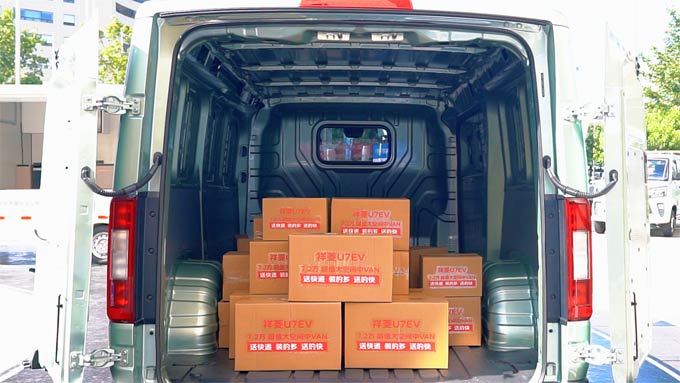 祥菱U7却将这份怅然酿成了惊喜:1.76米宽、1.45米高的货厢,宛如为标准物流箱量身定制的收纳格,60×40cm的箱体能稳稳并排码放4个,箱壁相贴、严丝合缝;再辅以1.25米超宽轮包间距,轮拱彻底退出空间争夺的舞台,无需再为避让凸起预留余地,货厢的每一寸空间都得以被货物填满。如此一来,单趟装载量较传统车型提升近三成,原本需三趟才能送完的货物,如今两趟便可收工,省下的那趟时间,足以多承接一单配送的订单,日积月累,一年仅此项便能多赚上万元。
