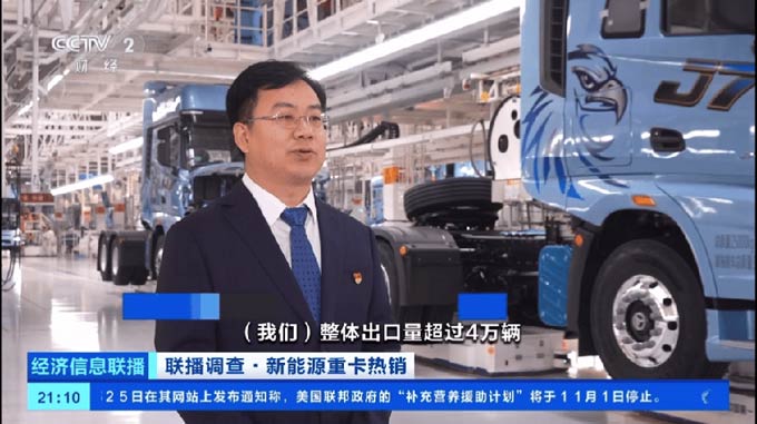 央视财经关注一汽解放新能源、出口亮眼成绩