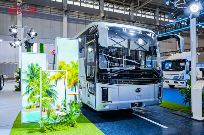 除卡车系列外,电动客车C11也凭借核心技术与时尚外观吸引众多观众目光。作为基于比亚迪e-BUS平台3.0打造的客车,车长11米,满载开空调工况续航最高可达400km以上,其安全性、经济性、舒适性等各项性能表现均达到行业领先水平。
