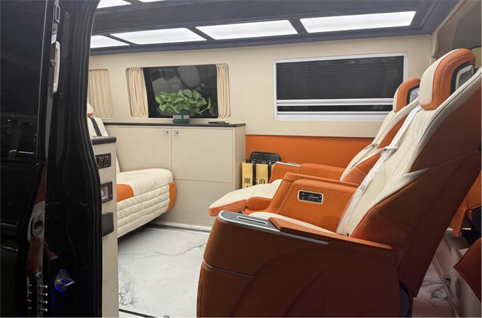 先锋官V商务车则精准捕捉了都市精英群体对于宿营车多功能性的高阶需求,内饰采用商务风格设计,座椅与床铺模式自由切换,巧妙融合商务接待的体面与家庭休旅的舒适,实现从城市街道到旷野风景的无缝衔接。