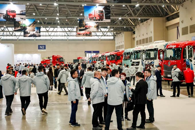 大会现场精心布置的展车与展品区,成为“商品领先”战略的有力注脚。展车区域,代表2026年年型车的57款全新车型盛大亮相,涵盖牵引、载货、工程、专用四大品系。其中,东风商用车本部携46款车型登场,传统能源与新能源各23台,并将传统能源与新能源产品分列两侧,交相辉映,清晰勾勒出东风商用车的双轨并行发展路径。东风新疆与东风随专分别带来7款整车与4款专业环卫车,阵列于展区中央,彰显东风体系内兄弟单元的协同实力与产品广度。