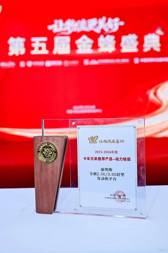 2025-2026年度第五届金蜂盛典于12月26日隆重启幕。作为深耕物流行业的年度权威盛会,本届盛典以“让物流更美好”为初心,聚焦行业正能量传承与高质量发展实践,对推动行业进步的优秀主体予以表彰。其中,康明斯中国凭借“货运路·巾帼行”卡车运输行业女性赋能项目斩获“卡车兄弟推荐公益品牌”,全新2.5L和3.0L轻型发动机平台获评“卡车兄弟推荐动力链产品”,双奖加身的背后,是企业深耕中国市场、践行社会责任与技术创新使命的生动实践,更彰显了物流行业“人文赋能+产业升级”的双向奔赴。