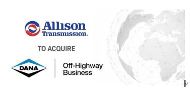 在成功深耕韩国市场的同时,艾里逊正稳步推进一项具有里程碑意义的全球收购。今年6月,公司正式签署协议,以约27亿美元收购德纳公司旗下的非公路业务板块。