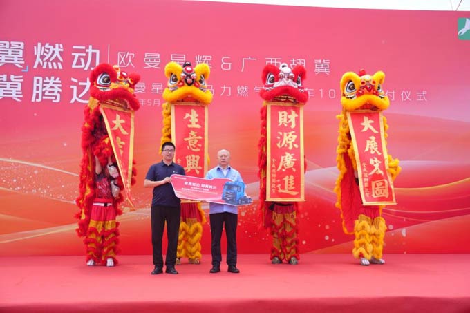 5月11日:“欧曼星辉&广西翅冀 欧曼星翼大马力燃气牵引车100台交车仪式”在广西梧州举行。此次欧曼星翼 14L-520 马力燃气牵引车的交付,充分彰显了欧曼动力技术的“硬核”实力,以及“以用户为中心”的服务践行,不仅为资源运输领域带来专属化的产品和服务保障,更树立了大马力燃气重卡的品质标杆。