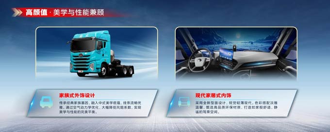 外观上,鹰腾延续解放经典鹰阵造型,线条凌厉,气场沉稳。应用采用空气动力学设计,流线车身令风阻系数较行业平均水平降低5%以上。叠加低滚阻轮胎系统,机舱流场优化,鹰腾相对JH6(智越版)百公里油耗节约1.7L,运输效率直接提升8%。