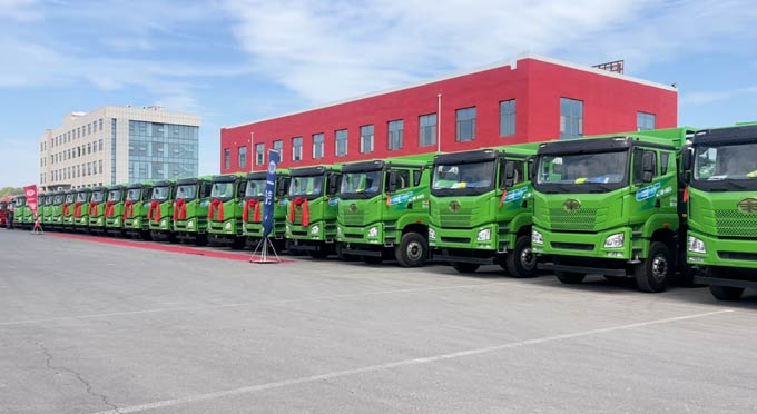 一天两城批量交付,解放JH6新能源自卸再启绿色重载新征程