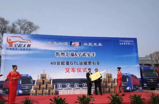 3月21日,陕晋区域经销商忻州汇福举办了欧曼GTL运煤牵引车交车仪式,活动现场交付车辆40余台给某运输公司,并达成近百台意向订单。