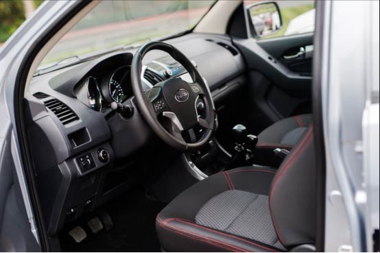 必须提到的一点,也是TΛGΛ达咖皮卡最让我满意的一点,就是整车的操控性。方向盘虚位间隙恰恰介于乘用车的紧凑与商用车的宽泛之间,自由行程间隙能稀释掉一些路面对方向盘的冲击力,使转向变得柔和,减轻驾驶员的手部疲劳。这一点在大多数皮卡上很难做到,这也是国内皮卡的一个进步,舒适化是必然的发展趋势。