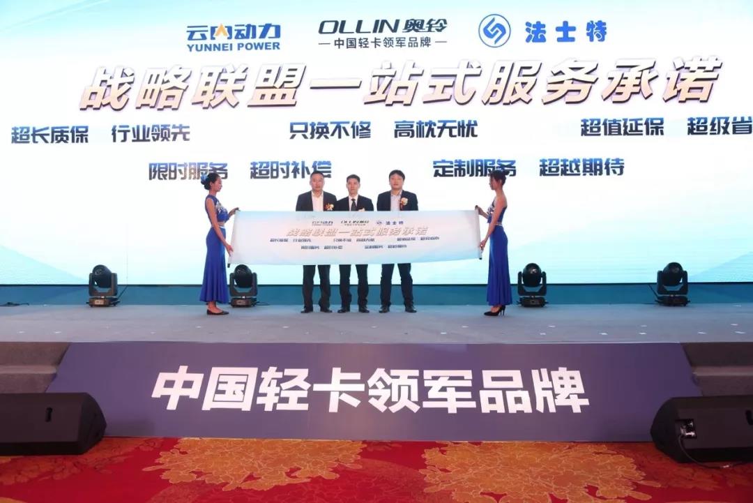 好的产品也需要有好的服务,此次活动上奥铃与昆明云内、陕西法士特共同签署成立战略联盟协议,提出一站式服务承诺。据了解,其服务内容更为整合、更加实在:行业领先超长质保、发动机“只换不修”服务,个性化超值延保、进站一次修好、超越期待的定制服务等5大服务内容,全面提升物流用户全周期用车效率,让用户买的放心、用的省心。