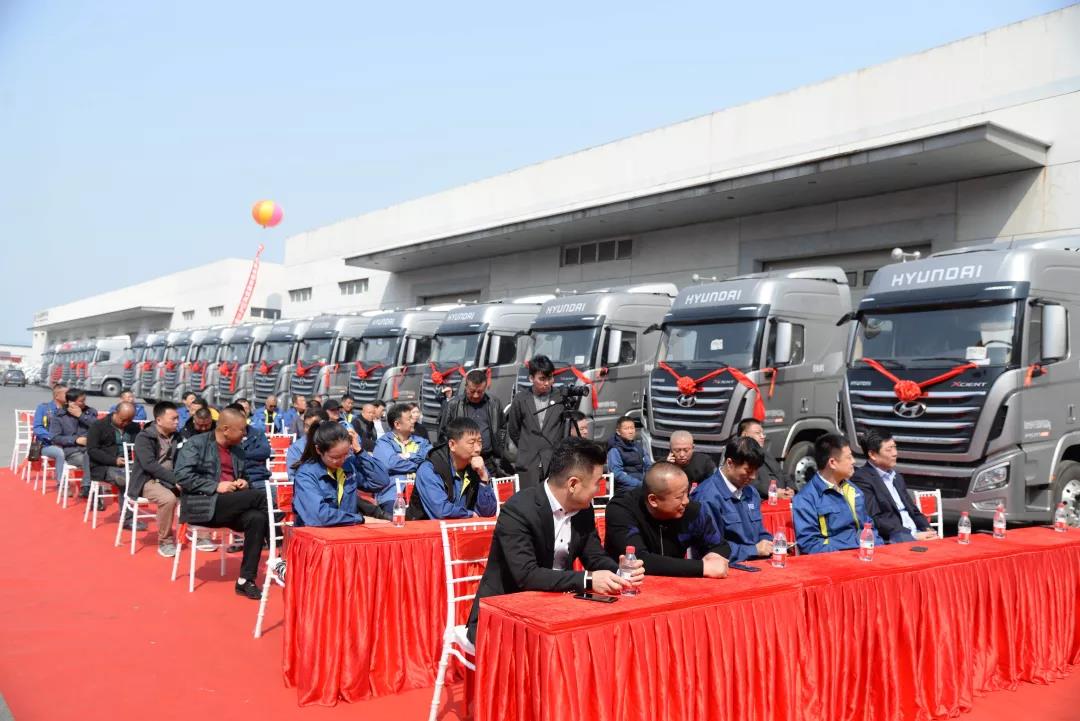 此次活动,在当地众多卡友的共同见证下,四川现代创虎经销商大连仲恒贸易有限公司顺利将14台崭新创虎交车牌交付给大连鑫畅顺运输有限公司,不仅充分彰显了四川现代全新创虎重卡先锋的卓越品质与非凡魅力,也为两家公司后期的合作建立起良好的关系,引来大家竞相围观、鼓掌。