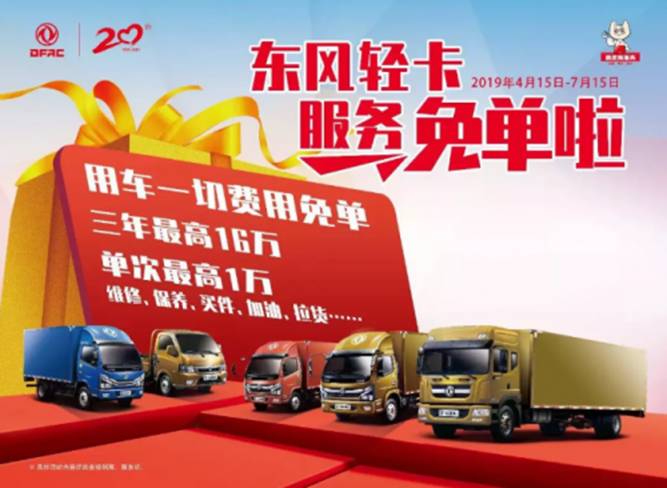 事实上,此次“千万钜惠服务免单”活动只是东风轻型车今年努力“促进服务水平升级”一系列活动之一。2019年是东风轻型车发展的第二十个年头,为了让更多卡友感受到20周年的福利和贴心关怀,东风轻型车设立2019年为“服务态度年”。在服务免单活动之前,早在3月份的“客户关怀月”活动中,东风轻型车便给出“有急必救率100%、承诺必达率100%”的服务承诺,给予卡友们全新的服务体验;而在已经到来的夏季,东风轻型车“夏季送清凉”客户关怀服务活动也正如火如荼开展,实现与刚结束的服务免单活动的无缝对接。