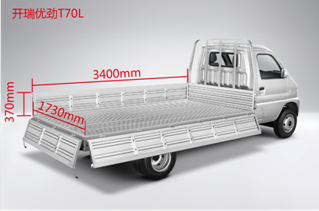 空间领先 梦想满载。能装才能赚,实实在在的大空间是创富者选择货车的重要标准。开瑞优劲创富王单排的货厢尺寸为3400*1730*370mm,双排的货厢尺寸为2700*1730*370mm,1730mm的货厢宽度同级车型最宽,2700mm的双排货厢长度也优于同级车型。同样装标准的12瓶装的啤酒,开瑞优劲创富王相较同级车型单层要多装10余箱,可谓是真正的大肚量,让创富者们装的多挣得更多。