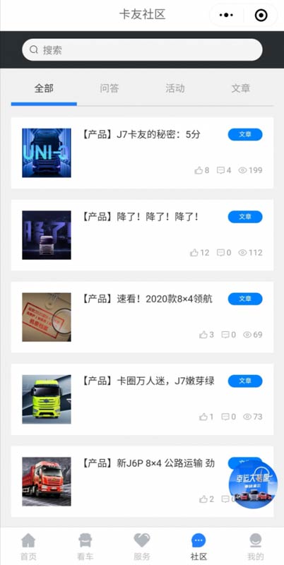 在卡友社区,大家可以畅所欲言的交流,行车问题与需求,用车心得及见闻。解放云店2.0还会定期举办幸运抽奖,车模、周边等福利等你来拿。卡友关注的产品、品牌资讯,都能在平台有惊喜的发现。